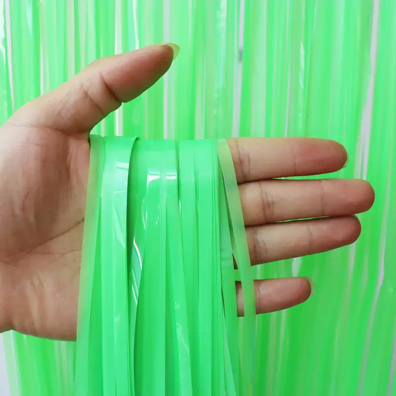 Der fluoreszierende Regenvorhang kann in Größe, Länge und Farbe an das Thema angepasst werden. Sein einwegverwendbares und umweltfreundliches Design macht ihn zu einer praktischen Wahl für Veranstaltungsdekorationen.
