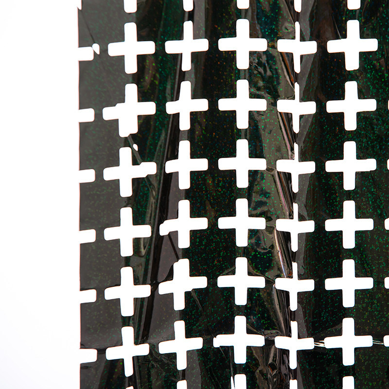 Bentuk kisi yang unik dari tirai ini menarik perhatian dan menambahkan sentuhan modern pada tirai sutra tradisional. Bahan foil memberikan efek kilau yang indah, menjadikannya sempurna untuk acara formal atau pemotretan.