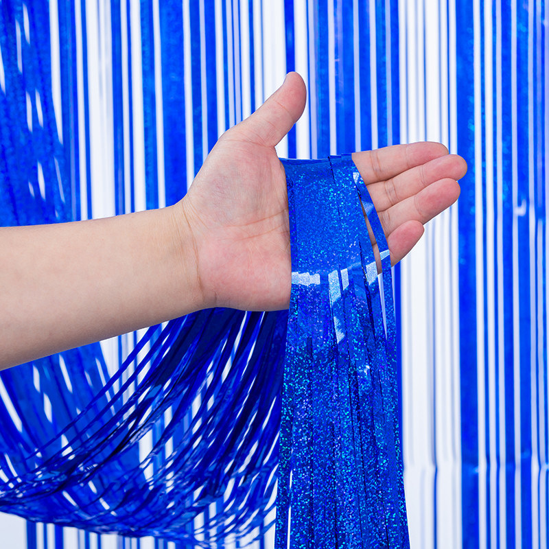 این یک پس زمینه عالی برای غرفه های عکاسی، میز های دسر و طرح های صحنه است.پرده باران لیزر طراحی شده است برای ایجاد یک فضای منحصر به فرد برای رویداد خود را و برای تنظیمات داخلی و خارجی مناسب است. پرده فرنگ لیزر فویل آسان برای نصب و می تواند به هر طول یا عرض برای متناسب با فضای مورد نظر خود را برش داده شود.