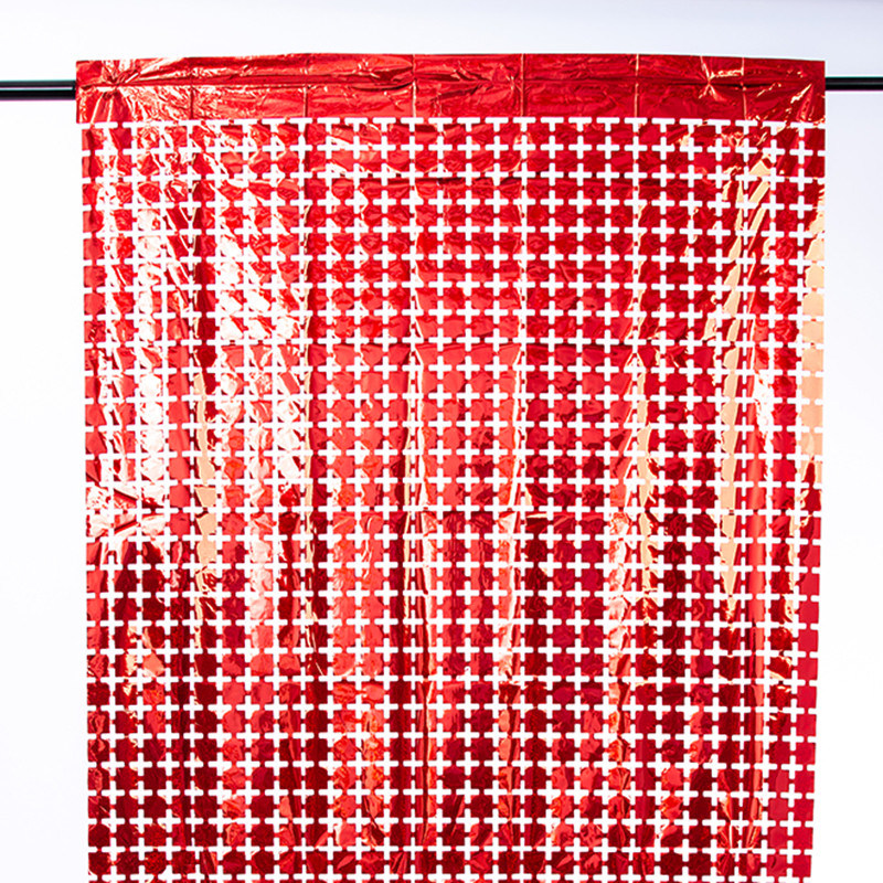 The Square Rain Silk Curtain features a unique grid design that creates an eye-catching decorative element for any event. Available in assorted colors, this waterproof foil curtain adds a vibrant, playful touch to party decorations and photo backdrops.