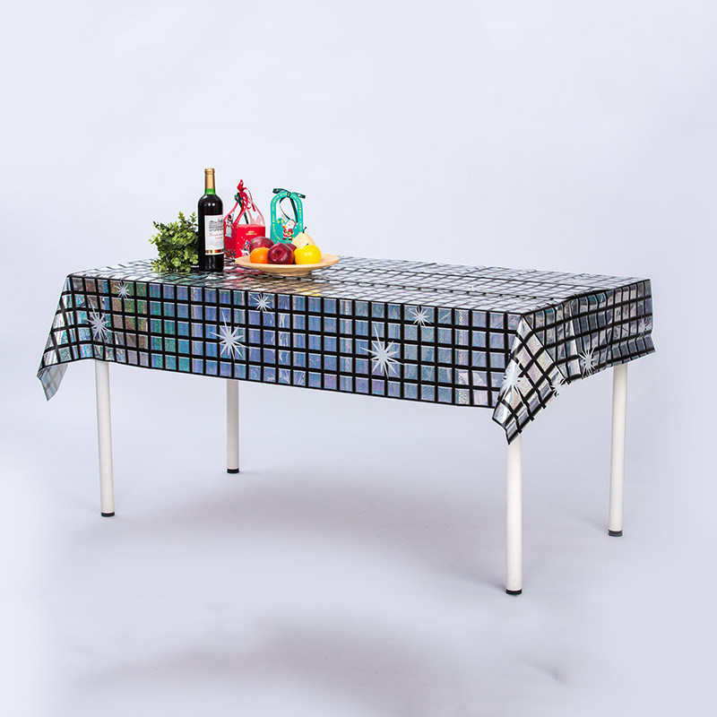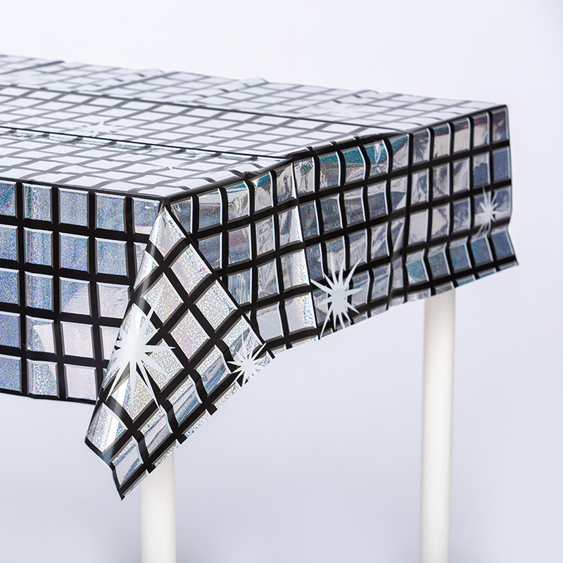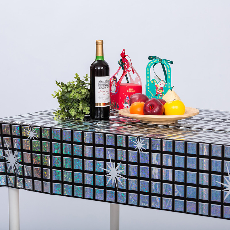 Sparkling Party Celebration Glittery Table Cloth made from high-quality Laser Pet Film that's both washable and waterproof. Perfect for birthday parties, weddings, graduations, and other special occasions.