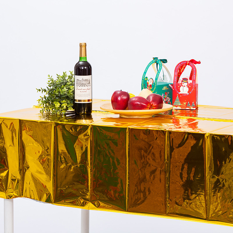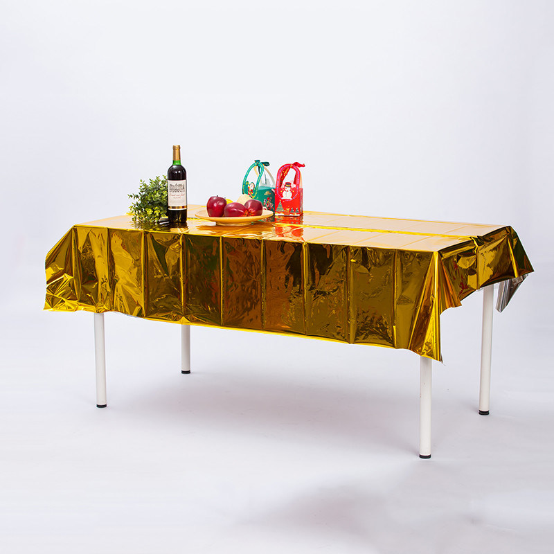 Rectangular Gold Foil Table Cover PET Aluminum Film For Modern Birthday Party Decoration