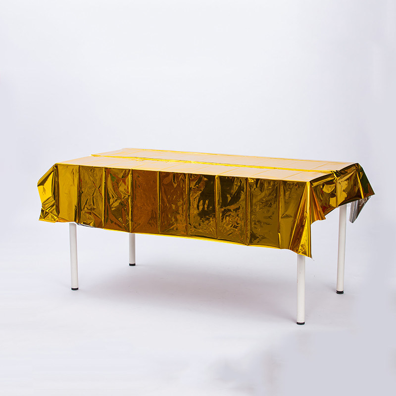 Our Foil Tablecloth is made from durable PET material, making it perfect for protecting your table from spills and stains. It is both reusable and recyclable, making it an eco-friendly option compared to traditional paper or plastic tablecloths. Plus, it comes in a variety of sizes to fit any table.